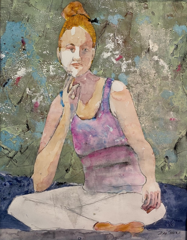 The effect of light on this figure is stunning. The textured color created with the layering of the paint in the background draws the attention to the figure’s simplicity. Very good!